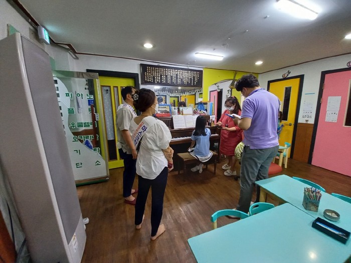 [사진설명] 지난 7월 실시한 학원 방역 점검 현장.