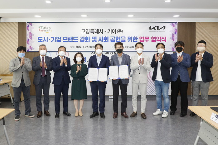 [부자동네타임즈 김인수기자] 고양특례시(시장 이동환)와 기아(주)가 지난 22일 고양시청에서 도시·기업 브랜드 강화 및 사회공헌을 위한 업무협약을 체결했다.