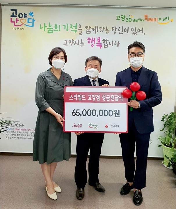 전달식에는 스타필드 고양점 강필서 점장과 경기사회복지공동모금회 강주현 본부장, 시 관계자들이 참석했다.