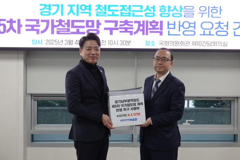 지난해 10월 말부터 한 달간 부승찬 의원과 더불어민주당 경기 용인시(병)지역위원회가 추진한 경기남부광역철도의 제5차 국가철도망계획 반영 및 사업 추진을 촉구하는 서명운동에는 총 4,521명의 수지 주민이 참여했다. 수지구민들이 제5차 국가철도망 구축계획 반영을 요구하는 건 해당 절차가 본 사업을 정부 차원에 공식화하는 첫 절차이며, 과거 유사사업이 국가철도망 구축계획에 미반영되어 사업 자체가 좌초됐기 때문이다.
