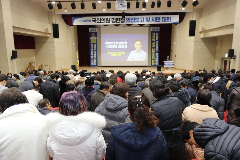 김한정 의원(더불어민주당 남양주을, 재선 국회의원, 국회 산업통상자원중소벤처기업위원회 간사)은 4일 남양주 진접주민자치센터 크낙새홀에서 의정 보고회와 시민과의 대화를 가졌다.