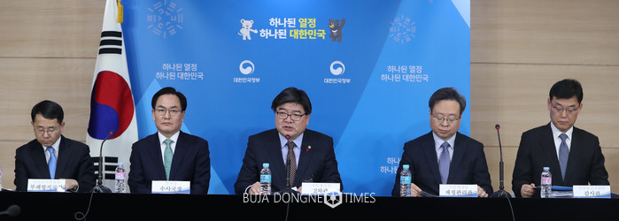 김용진 기획재정부 2차관과 국민권익위원회, 경찰청 등 관계자들이 8일 오전 서울 종로구 정부서울청사에서 공공기관 채용비리 특별점검 중간결과 및 향후 계획 합동브리핑을 하고 있다. 점검결과 275개 기관에서 총 2,234건(잠정)이 적발, 상당수가 채용절차상 흠결이나 제도적인 보완이 필요한 사안이지만 부정지시나 청탁, 서류조작 등 혐의가 높은 사례도 다수 발견됐다. 이 중 143건에 대해 문책과 징계, 23건은 수사 의뢰 조치됐다. 또 채용비리 신고센터를 통해 접수된 290건은 후속조치가 진행중이며 이중 21건이 수사 의뢰 조치됐다. 왼쪽부터 안준호 국민권익위원회 부패방지국장, 허경렬 경찰청 수사국장, 김용진 차관, 조규홍 기획재정부 재정관리관, 박태성 산업통상자원부 감사관. 2017.12.08.
