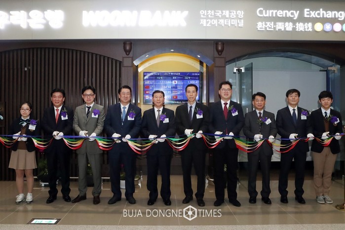 [부자동네타임즈 이현재 기자]우리은행(은행장 손태승)은 15일 오후 인천국제공항 제2여객터미널에서 장안호 우리은행 국내부문장, 안정준 인천국제공항공사 경영혁신본부장, 손홍기 인천출입국관리소장, 김종대 대한항공 전무 등 관계자들이 참석한 가운데 ‘인천국제공항 제2여객터미널영업점’ 개점식을 실시했다고 16일 밝혔다.