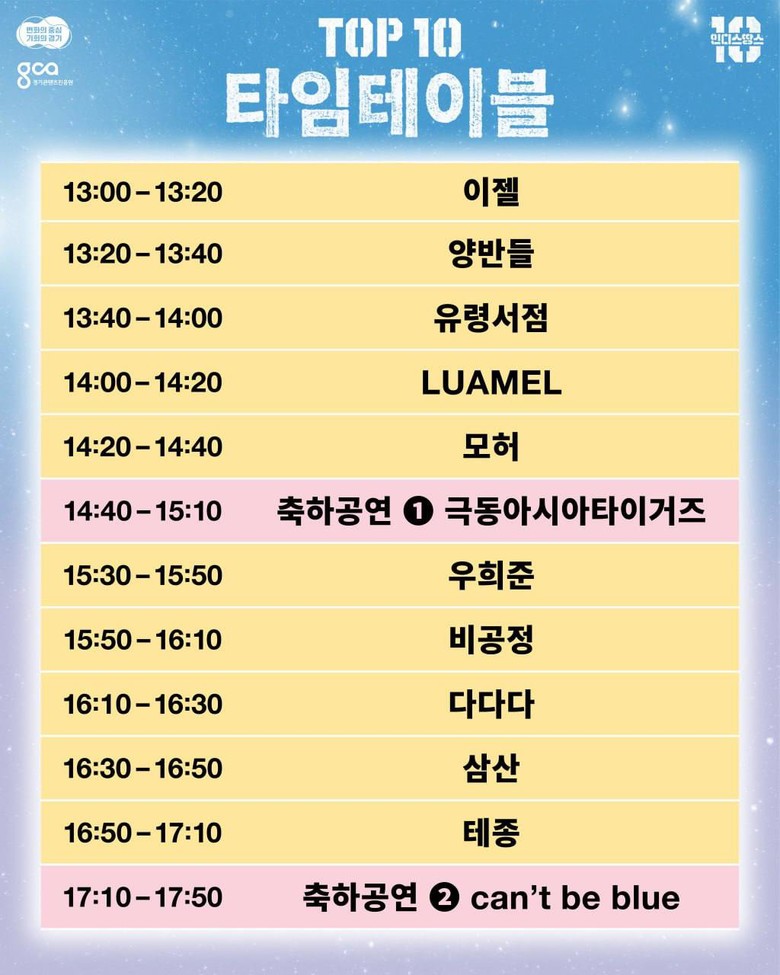 본선 경연은 8월 10일 계원예술대학교 우경아트홀에서 열리며 관람은 무료이다. 7월 29일 오후 3시부터 네이버 예약을 통해 사전 예매가 가능하다. 특히 본선 무대에는 극동아시아타이거즈와 지난해 준우승팀 캔트비블루가 스페셜 게스트로 출연해 무대에 활기를 더할 예정이다.