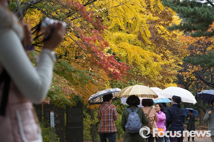 (서울=포커스뉴스) 전국이 대체로 흐리며 대부분의 지역에서 비가 올 것으로 보이는 13일 오전 서울 덕수궁에서 시민들이 우산을 쓴 채 발걸음을 재촉하고 있다.