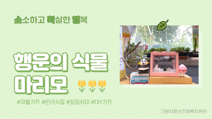 ‘소확행 꾸러미’는 여가활동, 신체건강, 정서안정을 주제로 행복엽서, 마리모 DIY세트, 발지압매트, 꽃잎차 세트로 구성되어 있다. 센터는 추첨을 통해 선물을 증정하는 이벤트도 진행할 예정이다.