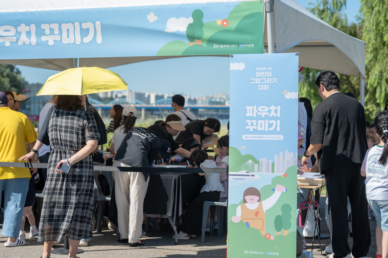 서울주택도시공사(SH공사, 사장 김헌동)가 반포 한강공원에서 개최한 ‘제26회 SH 어린이 그림그리기 대회’에서 참가자들이 가족, 친구들과 화창한 가을 날씨를 만끽하며 즐거운 시간을 보냈다. 이날 200여명의 참가 어린이들은 각자의 색깔로 저마다 ‘서울 시민의 행복 놀이터 한강’의 모습을 새하얀 화폭에 그려냈다.