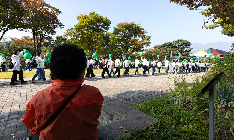 | ▲12일 서울대공원에서 신천지 과천‧왕십리교회가 ‘신천지 전도 대성회’ 홍보 행진을 펼치는 가운데, 시민이 행진을 바라보고 있다. [사진 제공 = 신천지 과천교회] |