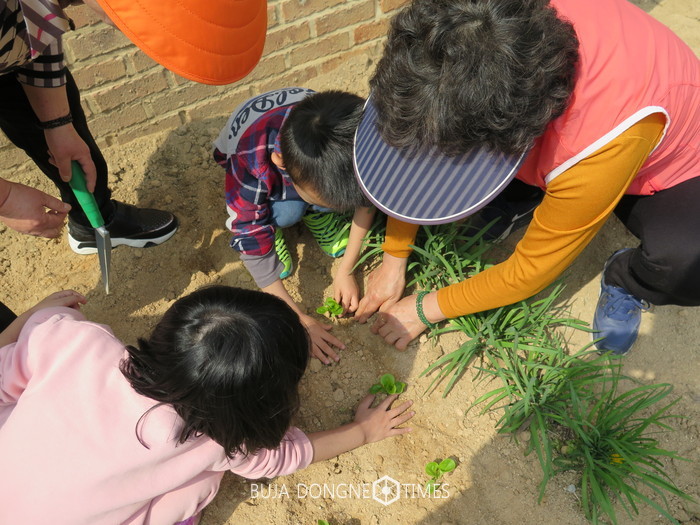 지역 어르신들이 유치원을 방문해 유아들과 함께 유치원의 빈 공터를 텃밭으로 조성하여 상추, 감자를 심고, 화분에 강낭콩을 심으며 생태교육의 장을 만드는 시간으로 마련됐다.