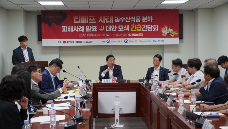국회 농림축산식품해양수산위원회 소속 국민의힘 정희용 국회의원 ( 경북 고령군 · 성주군 · 칠곡군 ) 은 14 일 ( 수 ) 오후 2 시 국회의원회관 제 3 간담회실에서 < 티메프 사태 농수산식품 분야 피해사례 발표 및 대안 모색 긴급간담회 > 를 개최했다 .