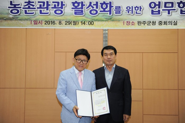 [완주=부자동네타임즈 이정술 기자] 완주군이 농촌관광의 새로운 전환점을 마련하고자 (사)대한민국방송코미디언협회와 업무협약을 체결했다.