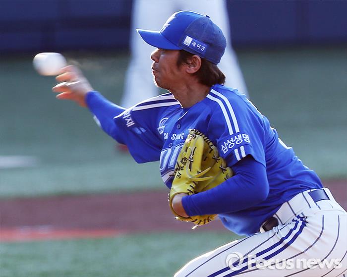 | △ 지난 9월 13일 목동구장에서 열린 2015 프로야구 삼성-넥센 경기, 9회말 3점차 리드를 지키기 위해 등판한 삼성 마무리 임창용이 넥센 타선을 잠재우는 투구를 하고 있다. <사진제공=포커스뉴스> |