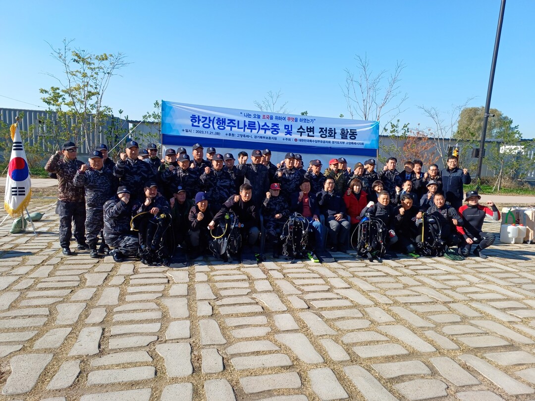 행사는 고양시의회 의장, 푸른도시사업소장, 경기북부보훈지청장 등 내빈의 축사로 시작됐다. 이어서 회원들이 잠수 장비와 보트를 동원해 한강 정화 활동을 진행했다.