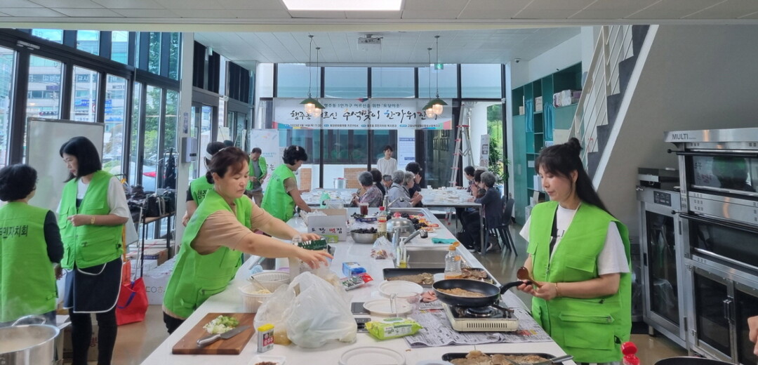 이날 주민자치회 위원들이 직접 장을 보고 떡국, 송편, 부침개, 김치 등의 음식을 요리해 어르신들에게 식사를 대접하여 즐거운 시간을 선사했다.