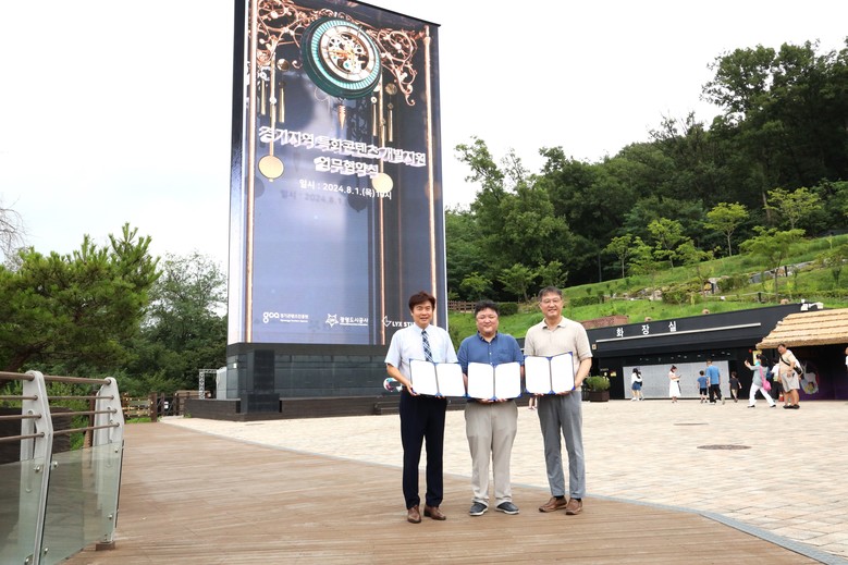 경기콘텐츠진흥원(원장 탁용석, 이하 경콘진), 광명도시공사(사장 서일동), ㈜릭스스튜디오(대표 장정욱, 김현준)은 ‘경기 지역특화 콘텐츠 개발지원’ 사업 공동 추진을 위한 업무협약을 8월 1일 광명동굴에서 체결했다.