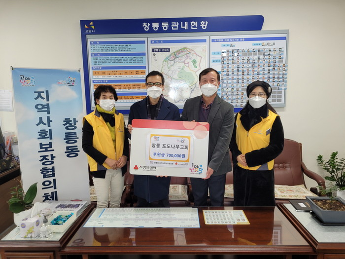 [부자동네타임즈 김인수기자] 고양시 창릉동 행정복지센터(동장 이병영)는 지난 6일 관내 개척교회인 창릉 포도나무교회(담임목사 최세영)에서 독거어르신 지원 후원금 70만원을 창릉동에 전달했다고 밝혔다.