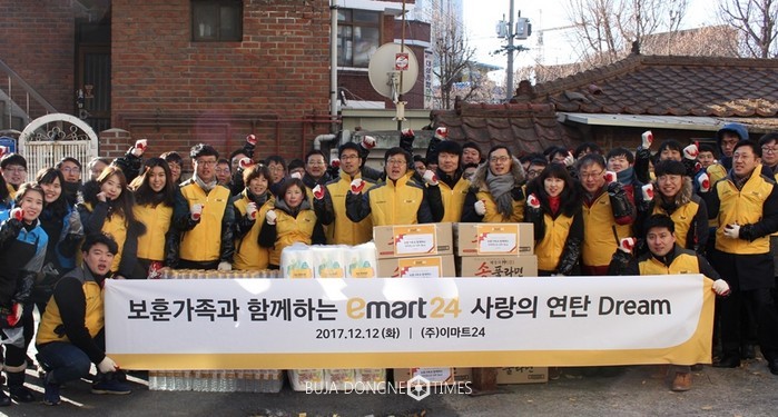 [부자동네타임즈 김현정 기자]이마트편의점‘이마트24’가12일 서울 영등포구 신길동을 찾아, 생활이 어려운 보훈가족들에게 연탄을 전달하는 연탄나눔행사를 실시한다.