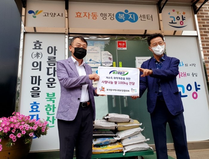 [부자동네타임즈 김인수기자] 고양특례시 효자동행정복지센터(동장 조재현)는 지난 20일, 신문사 에코데일리가 효자동 지역사회보장협의체에 저소득 취약계층을 위한 사랑나눔 쌀 100kg을 전달했다고 밝혔다.