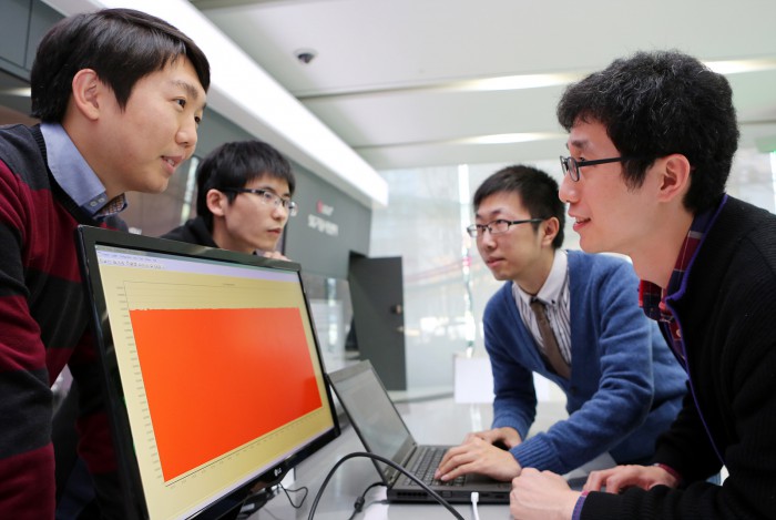| △ LG유플러스 직원들이 기가 LTE 속도를 시연하고 있다.<사진제공=LG유플러스> |