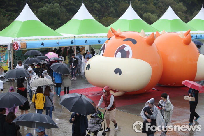 | △ 지난달 10일 오후 강원 횡성군 횡성읍 섬강둔치 일원에서 ‘제11회 횡성한우축제’가 열린 가운데 빗속에서도 관광객들의 발걸음이 끊이지 않고 있다. <사진제공=포커스뉴스> |