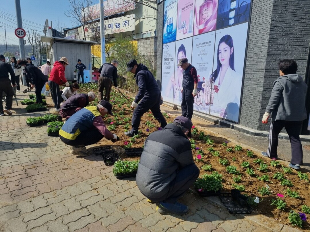행사에는 통장협의회 지영석 회장을 비롯한 직능단체, 마을 주민 등 30여 명이 참여했다. 이날 480본의 초화를 식재하여 통행이 많은 길가에 화사함을 더했다.