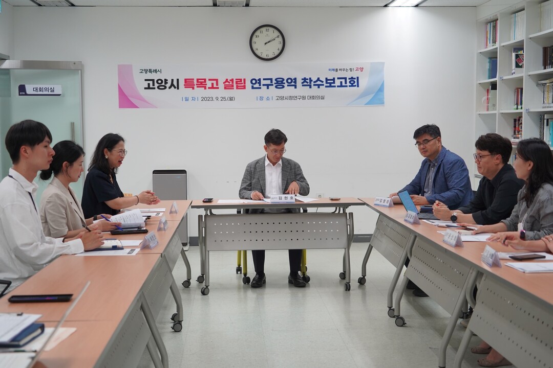 착수보고회에는 고양시청 관계자 및 연구용역을 수행하는 고양시정연구원 관계자가 참석하여, 용역 추진 계획 및 세부 진행 방향을 논의했다.