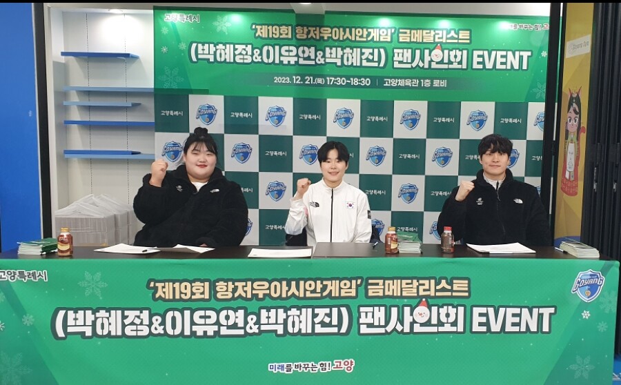 [부자동네타임즈 = 김인수 기자] 지난 21일 고양체육관에서 항저우아시안게임 금메달리스트 박혜정·이유연·박혜진 선수 팬 사인회를 개최했다.