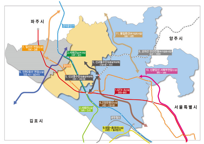 [사진설명] 고양시 철도망 계획도(향후 추진 과정에서 노선 변경 가능)
