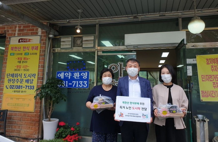 조재현 효자동장은“홀로 사시는 저소득 어르신들을 위해 정성껏 도시락을 마련해 주신 북한산 한식 부페 측에 감사드린다. 매 끼니가 걱정인 어르신에게 이웃 사랑을 전하게 돼 보람을 느낀다”고 말했다.