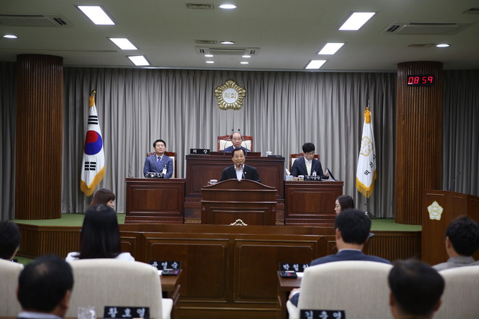 소병홍 의장은 개회사를 통해“이번 여름은 기록적인 무더위에 가뭄까지 겹치면서 농가의 피해가 많아 농민들의 시름과 고통에 무척 안타까운 마음 금할 길 없다”고 말하고, 여름철 후반까지 늦더위가 예상되는 바 집행부에서는 예방조치를 철저히 시행하여 피해가 최소화될 수 있도록 최선을 다해달라고 부탁했다.