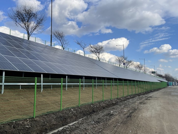 [사진설명] 현천동 제2자유로 경사면 태양광발전 시설.