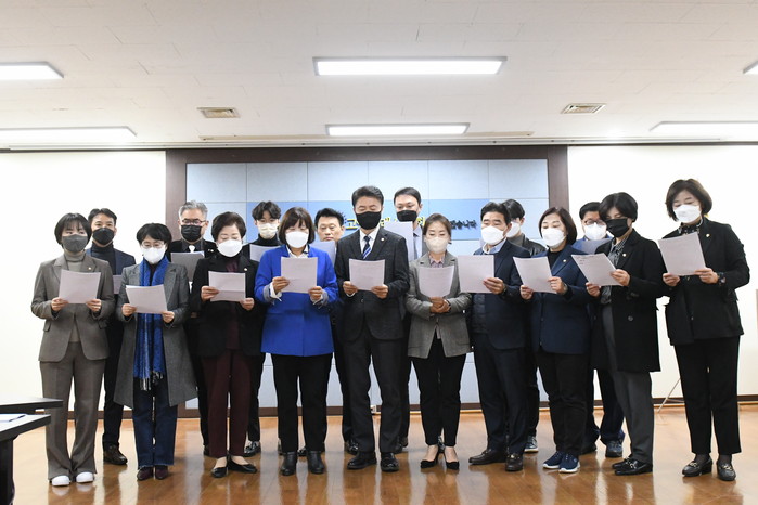 [부자동네타임즈 김인수기자] 고양특례시의회 더불어민주당 의원 전원은 25일(금) 오전 9시 30분, 고양시의회 4층 영상회의실에서 ‘고양특례시의회 민주당 의원은 개별 재량예산 1억원을 모은 17억원으로 고양페이 인센티브 예산 증액을 요구합니다’성명서를 발표했다.