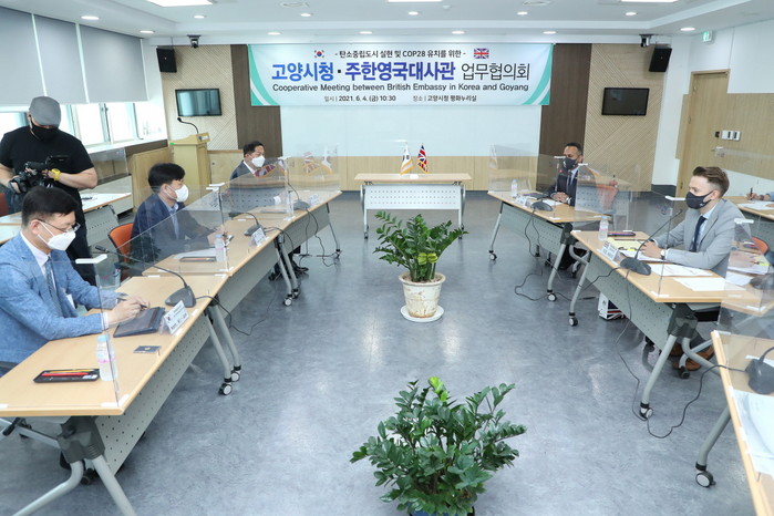 [부자동네타임즈 김인수기자] 고양시는 2050 탄소중립 달성 및 제28차 유엔기후변화협약 당사국총회(COP28) 유치를 위해 지난 4일 고양시청에서 주한영국대사관과 업무협의회를 가졌다.