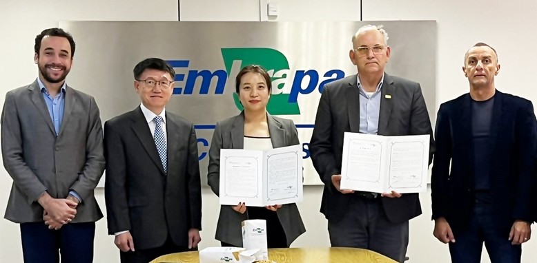 한국농수산식품유통공사(사장 김춘진)는 19일 브라질 브라질리아에서 농업연구청(Embrapa)과 식량안보 제고와 지속 가능한 먹거리 환경조성을 위한 업무협약을 체결했다.