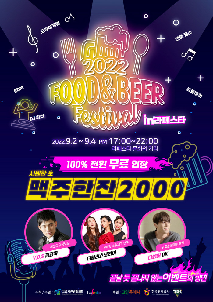 2022 푸드앤비어 페스티벌은 고양시와 한국관광공사가 후원하고 고양시관광협의회와 라페스타 상가관리단이 주최하는 시민 참여 행사이다.