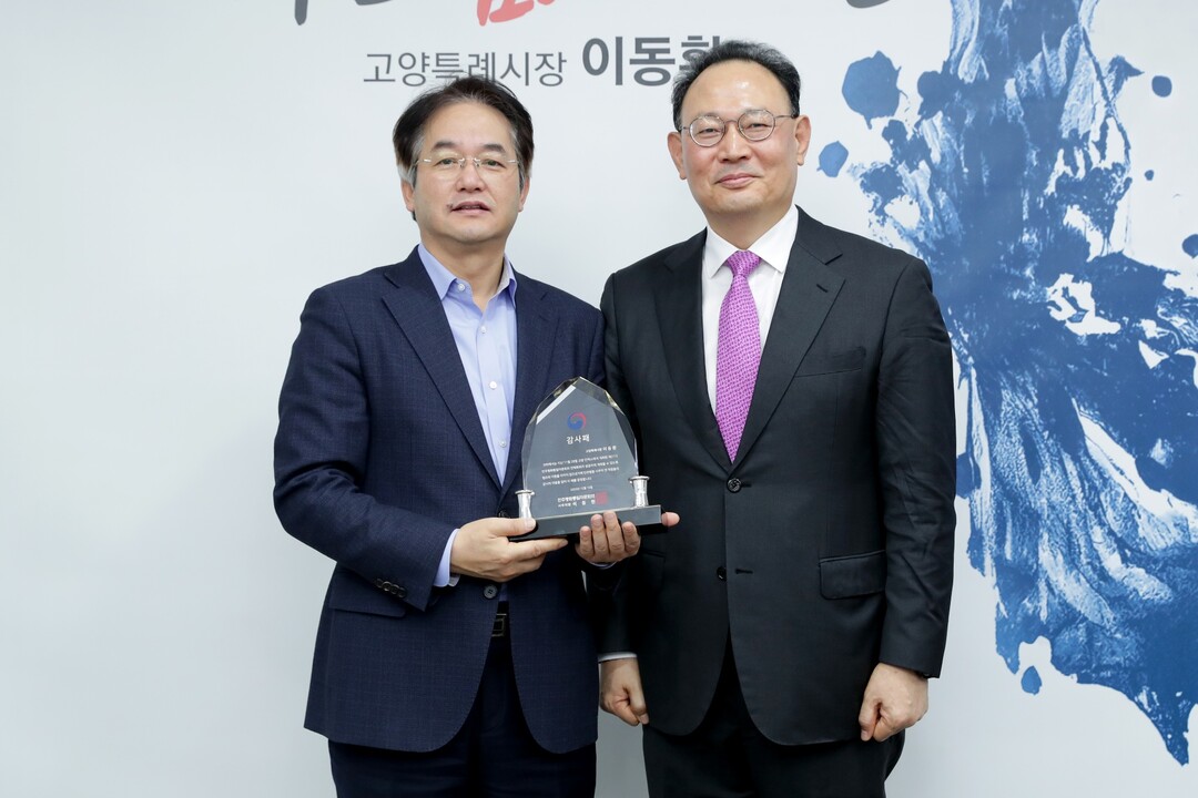 [부자동네타임즈 = 김인수 기자] 15일 민주평화통일자문회의(이하 민주평통) 중앙사무처는 고양특례시청 열린시장실에서 이동환 고양시장에게 감사패를 전달했다.