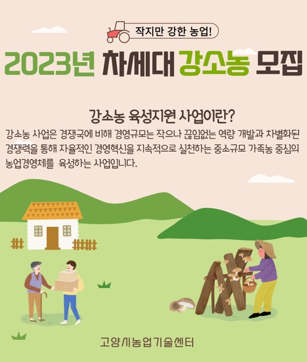 [부자동네타임즈 김인수기자] 고양특례시(시장 이동환)는 미래농업을 이끌어 나갈 ‘차세대 강소농’을 2월 28일까지 모집한다.
