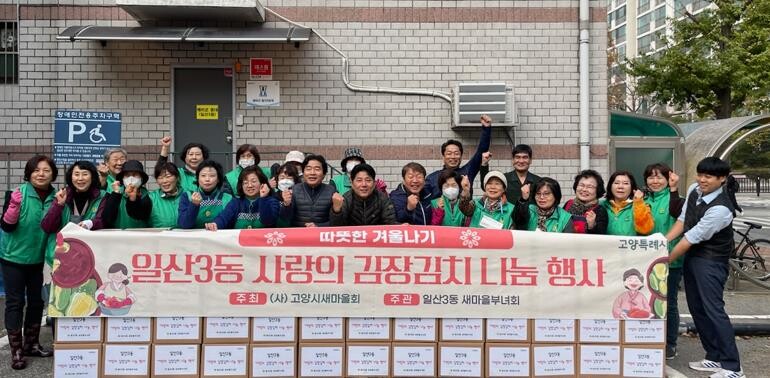 이호식 일산3동장은 “추운 날씨에도 불구하고 정성 가득 김장김치를 준비해 주신 직능단체 회원들에게 감사드리며, 물가상승으로 인해 경제적 어려움이 가중되고 있는 저소득층 이웃에게 응원의 마음이 잘 전달되었으면 좋겠다.” 라고 말했다.