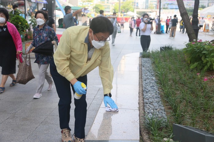 각 동을 중심으로 일제히 모인 방역단은 방역 지침에 따라 마스크 및 방호복을 착용하고 거리 두기를 준수하며, 휴대용 소독기와 스프레이 형 소독제 등을 이용해 관내 광장, 공원, 상가, 버스정류장 등 다중이용시설 및 방역 취약지역을 중심으로 꼼꼼히 소독을 실시했다.