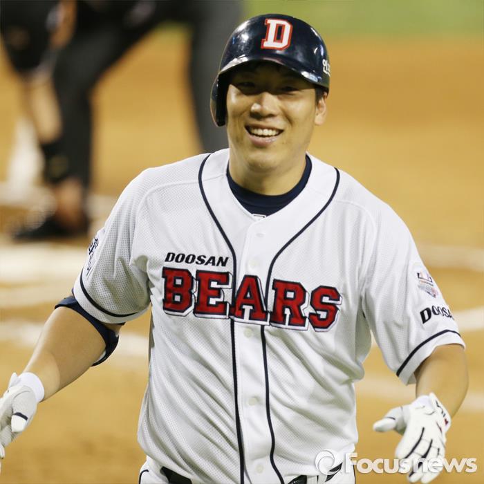| △ 지난 9월 25일 잠실구장에서 열린 2015 프로야구 kt-두산 경기, 1회말 2사 3루에서 두산 김현수가 우월 2점 홈런을 치고 활짝 웃으며 홈인하고 있다. <사진제공=포커스뉴스> |