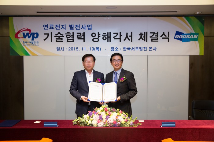 두산은 지난 10월 한국서부발전과 서인천발전소 내에 5㎿급 연료전지설비 공급계약을 체결한 바 있다.