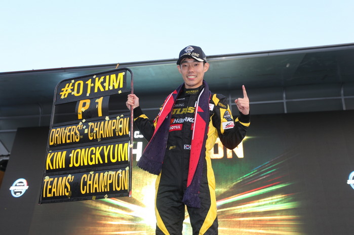 [사진설명] 현재 드라이버 순위 1위이자 2018, 2019 챔피언 김종겸의 2019 시즌 챔피언 세리머니 장면.
