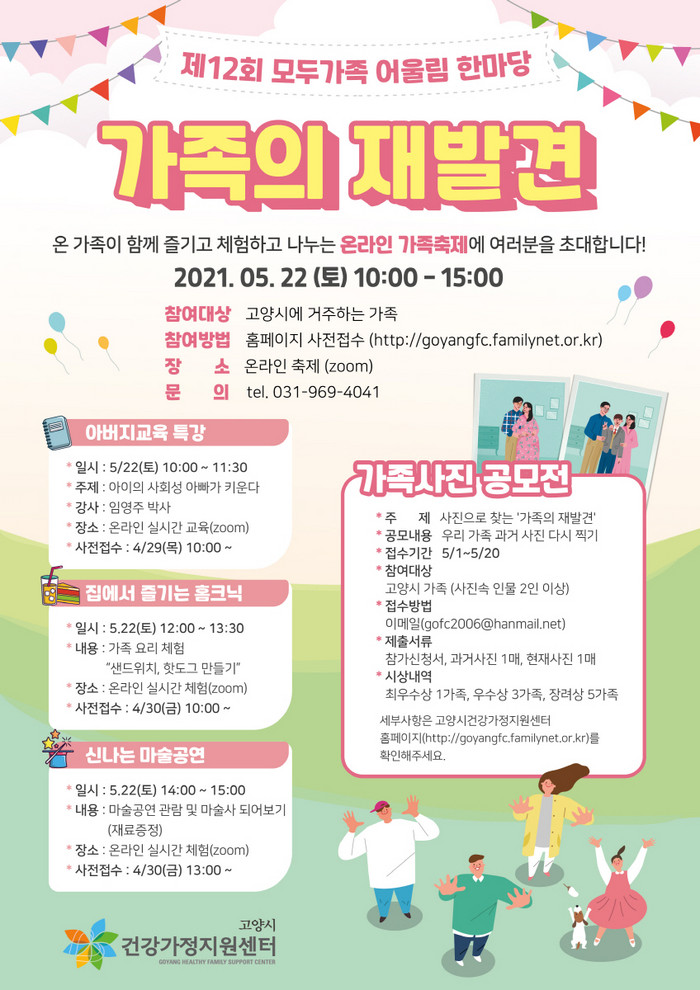 이번 행사를 주관하는 고양시 건강가정지원센터는 매년 가정의 달을 기념해 공연 등 다양한 프로그램을 진행해 왔다. 올해는 코로나19 확산 방지를 위해 집에서 안전히 즐길 수 있도록 온라인으로 자리를 마련했다.