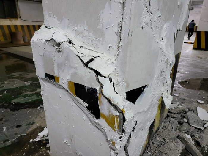 해당건물 지하3층 기둥이 일부 파손됐고 주차장 입구 앞 인도의 지반이 직경 5m, 깊이 0.5m정도 침하됐다. 해당건물은 1995년 사용승인을 받은 지하3층, 지상7층 상가건물이다. 음식점, 제과점, 미용업소 등이 입주해 있다.