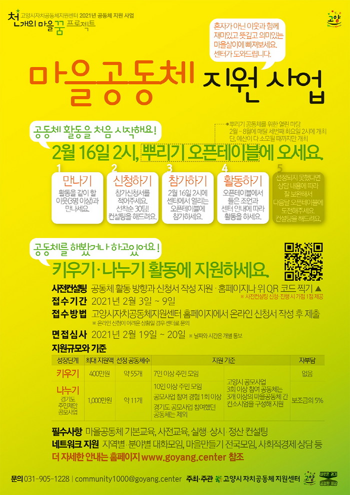 자세한 문의는 고양시자치공동체지원센터로 하면 된다.