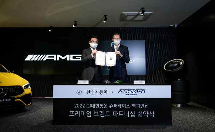 [부자동네타임즈 김인수기자] 2022 CJ대한통운 슈퍼레이스 챔피언십은 지난 14일 메르세데스-AMG 브랜드 센터인 AMG 서울(AMG Seoul)에서 지난해 이어 2년 연속으로 메르세데스-벤츠 코리아 공식 딜러 한성자동차와 프리미엄 브랜드 파트너십 협약을 체결했다고 19일 밝혔다.