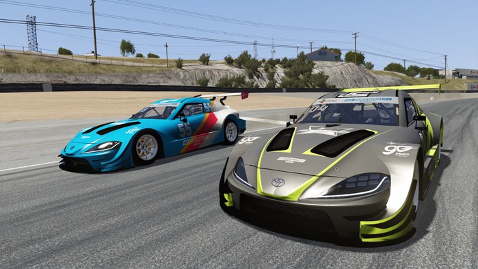 [사진설명] 2020 CJ대한통운 e슈퍼레이스 시리즈 경기에서 김규민(왼쪽)과 김영찬이 1위 자리를 차지하기 위해 경쟁하고 있다.