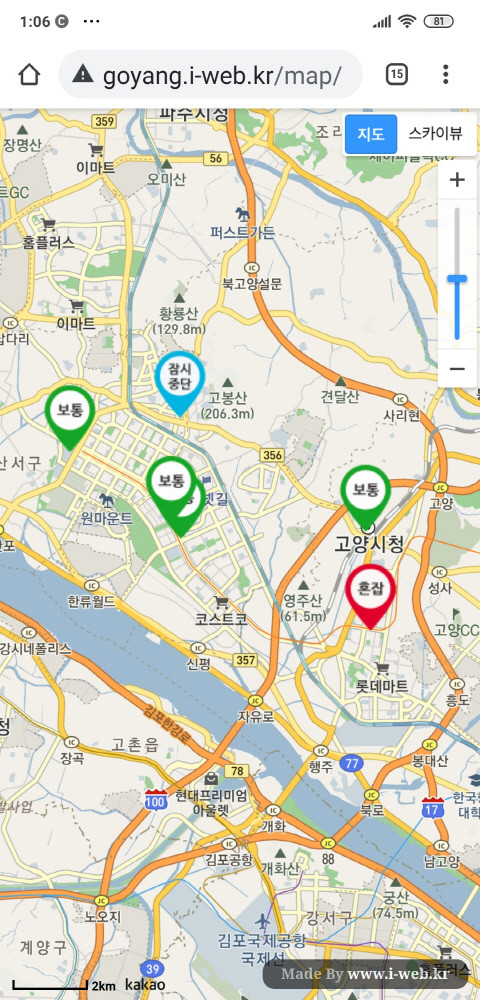 [사진설명] 고양시 선별검사소 혼잡도 스마트폰 화면.