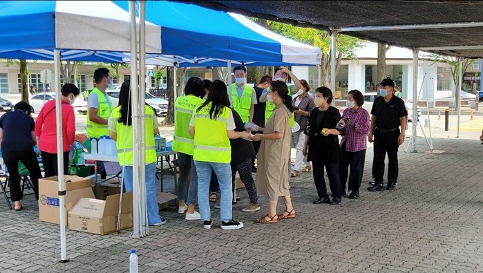 [사진설명] 시 관계자와 지역자율방재단이 국민행동요령 리플릿 등을 배부하고 있다.