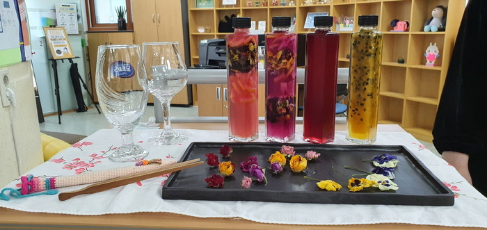 실습 과정의 경우 고양시 꽃음식연구회에서 개발한 꽃차실습 키트를 교육생들에게 미리 제공해 진행한다.